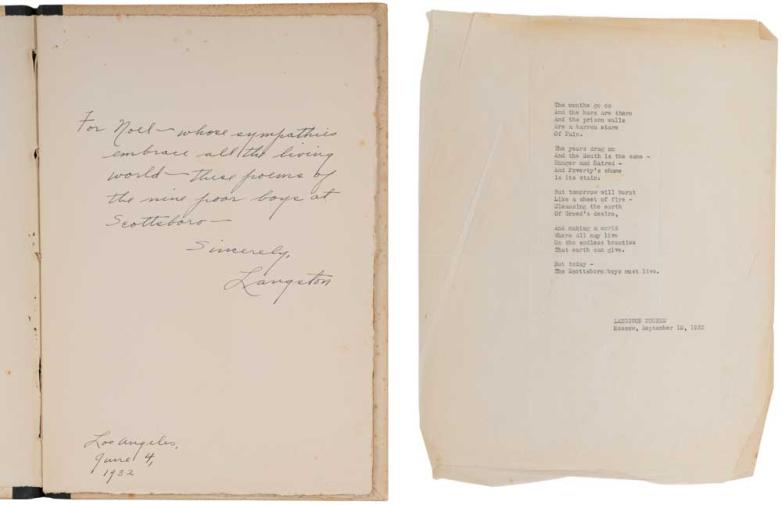 The presentation copy of Langston Hughes’s Scottsboro Limited inscribed to his friend Noël Sullivan