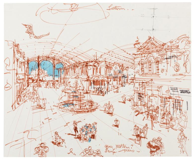 Original hand-drawn concept art for Tokyo Disneyland World Bazaar 1. Estimate: $2,000-6,000