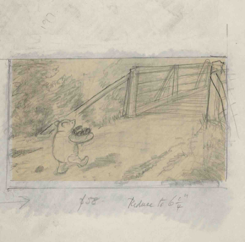 And that was the beginning of the game Poohsticks by Ernest Shepard, preliminary drawing in pencil