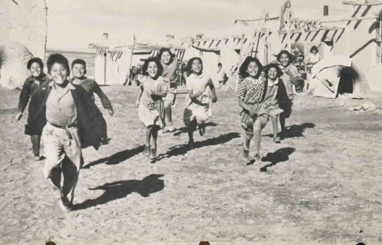 Children running at Santa Ana Pueblo, one of the high-resolution images provided at the request of the Pueblo of Santa Ana, one of the tribal nations who partnered with the library as part of the Mellon-funded planning grant.