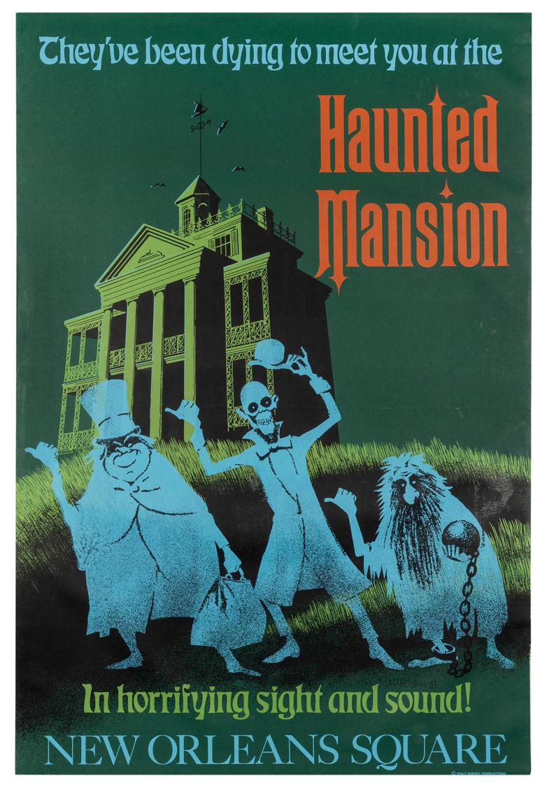 On Friday, July 30, Disneyana and Pop Culture at Potter & Potter Auctions on 30 July. The 887 lots include an oil painting of a "stretched portrait" from the Haunted Mansion, estimated at $50,000–80,000. A partially-restored vehicle from the Mr. Toad's Wild Ride attraction could sell for $40,000–60,000. A original silkscreened "Haunted Mansion" poster signed by Imagineer Marc Davis is estimated at $10,000–15,000, while an original acrylic painting by Frank Sinatra could sell for $10,000–20,000.