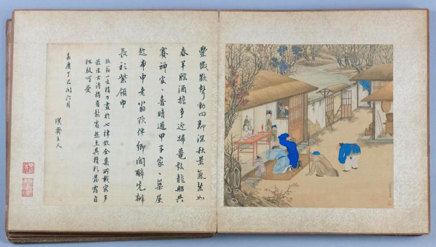 The Potomack Company holds a single-item sale on Wednesday, April 8 of an album of 46 illustrations by Jiao Bingzhen (active 1629–1728). The images are mostly of farming and weaving activities. The album also contains the ownership stamps of Gong Qin Wang Yixin (1833–1898), a son of Emperor Daoguang. The prince was a well-known collector, and this album is estimated at $100,000–200,000.