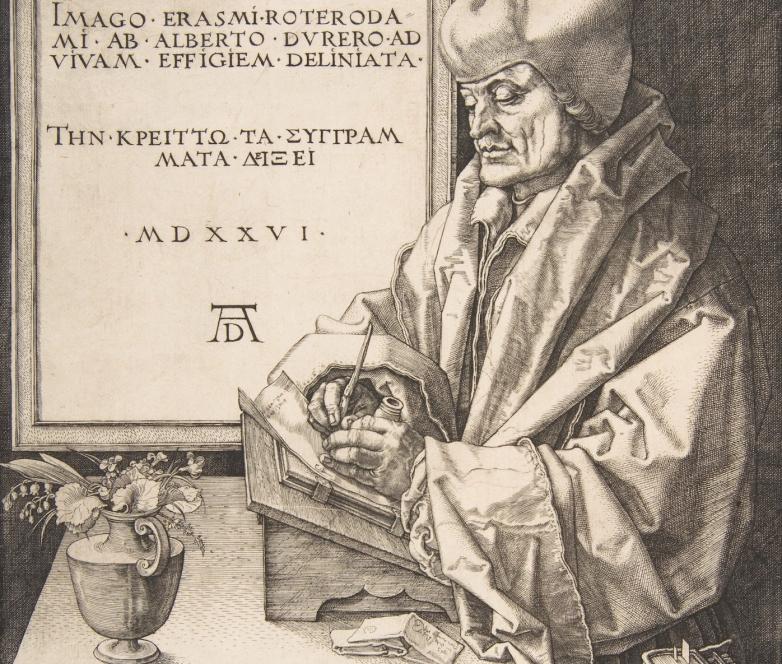 Detail from the Albrecht Dürer engraving, Erasmus of Rotterdam, 1526.