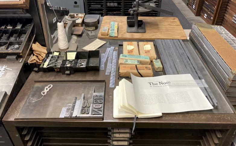 In 1989, Hoyem acquired the Mackenzie & Harris foundry and its historic typeface collection (the largest outside the Smithsonian), folding the operation into Arion’s workshop under the name M & H Type. Then in 2000, an umbrella nonprofit organization called the Grabhorn Institute was established to help maintain and fund Arion’s bookmaking facilities, educational programming, and apprenticeship program. After losing the lease to its original location during the dot-com boom, this mini empire devoted to traditional bookmaking moved to its current location in the Presidio in 2001.